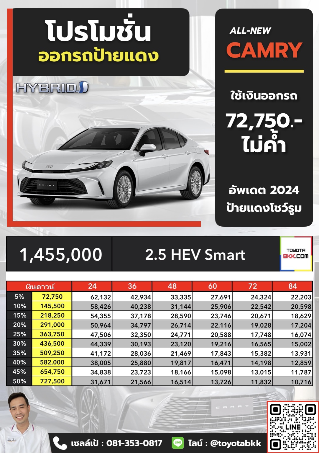 โปรโมชั่น Camry 2025 ดาวน์ต่ำ ผ่อนน้อย ผ่อนนาน